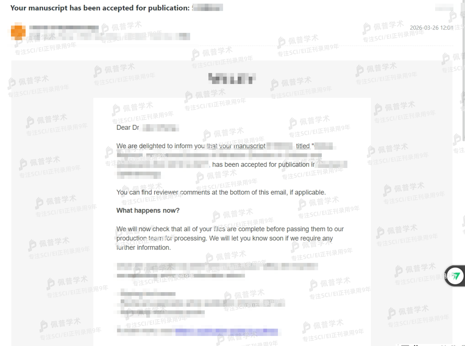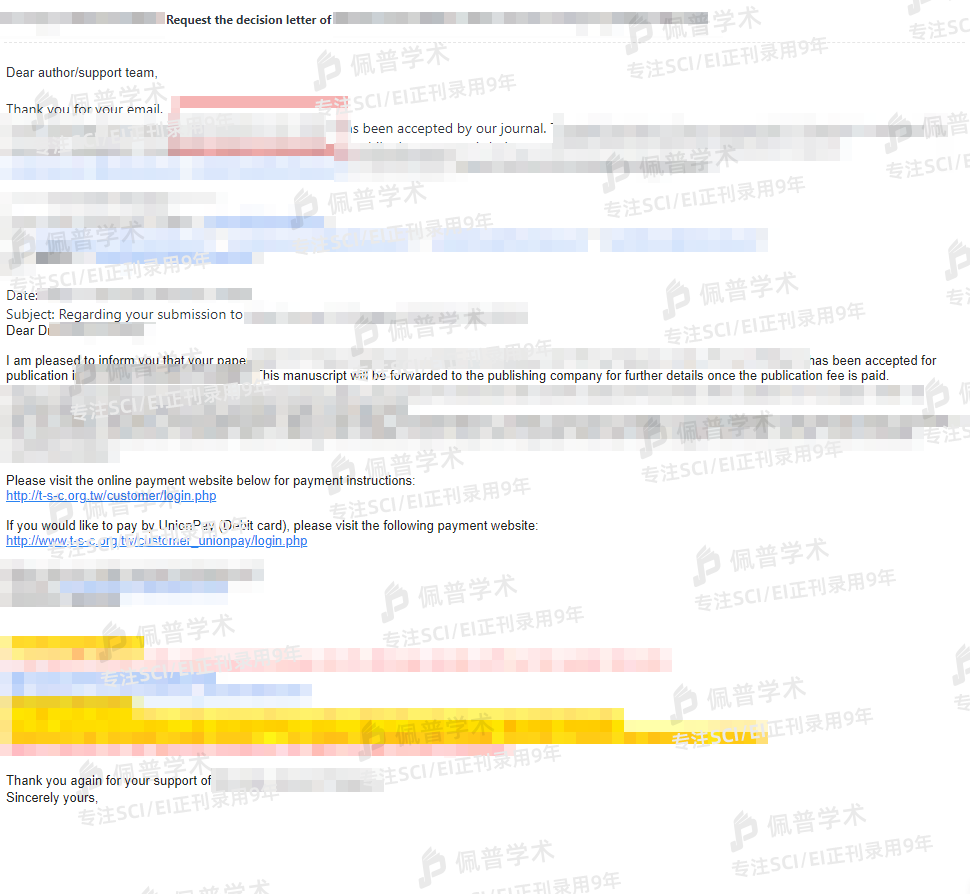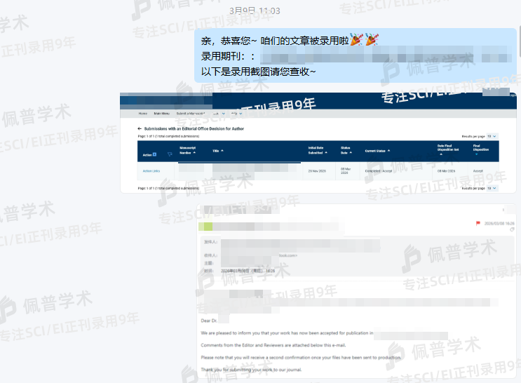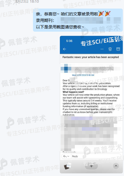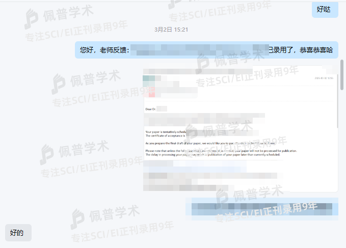 此前被拒了3次,经朋友介绍到佩普这边提交文章预审,通过后不到3个月就收到录用函了,太棒了!!!