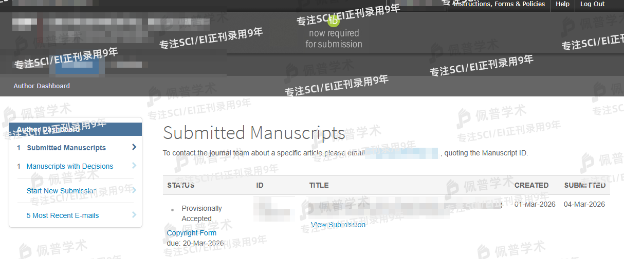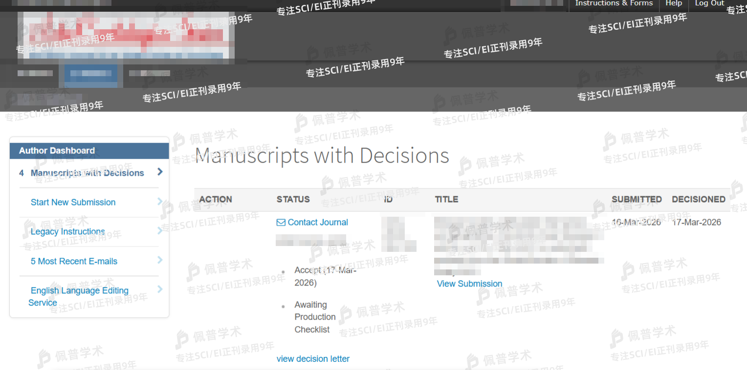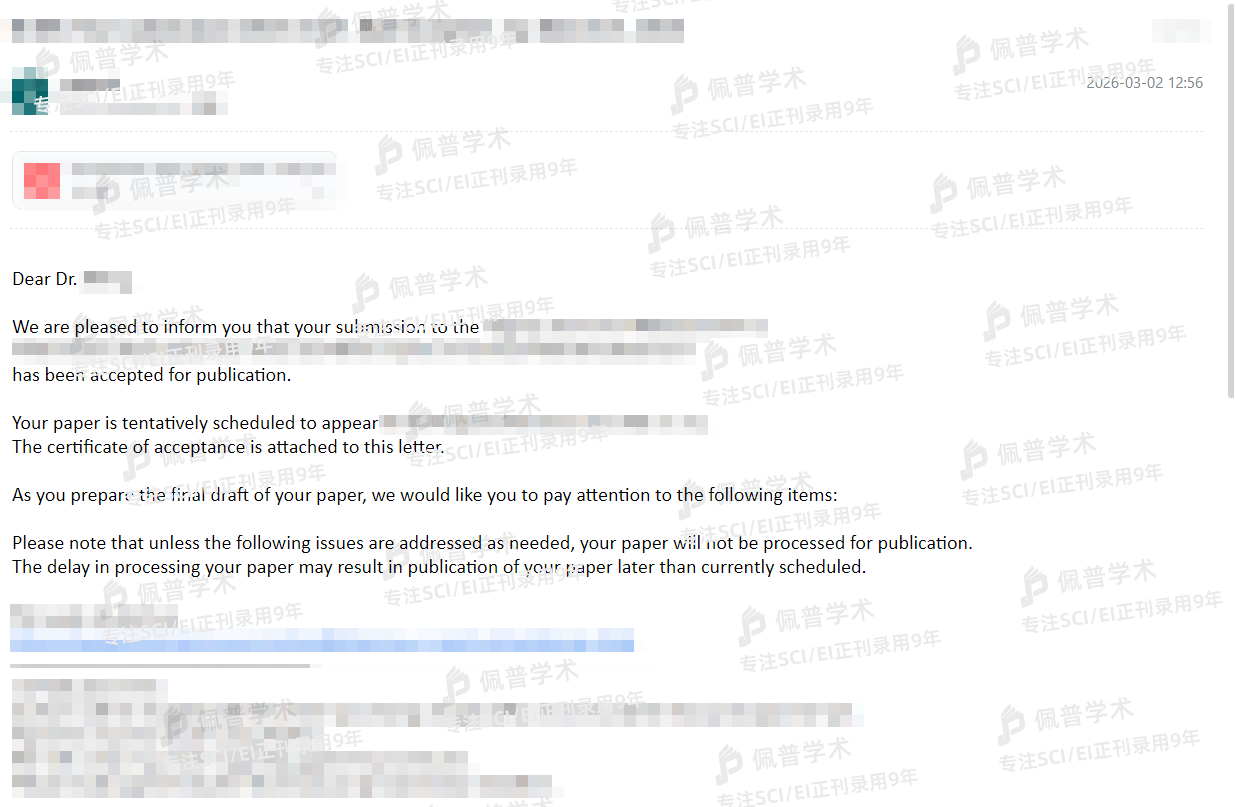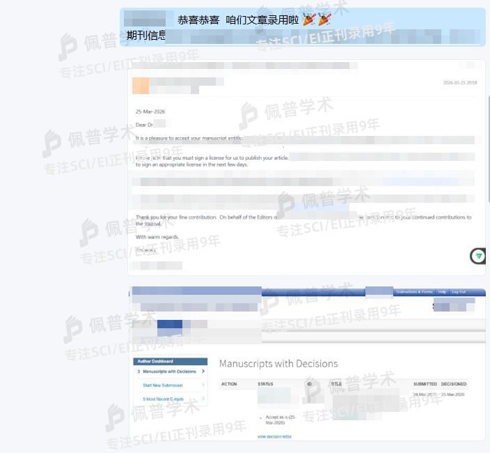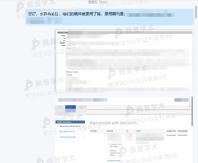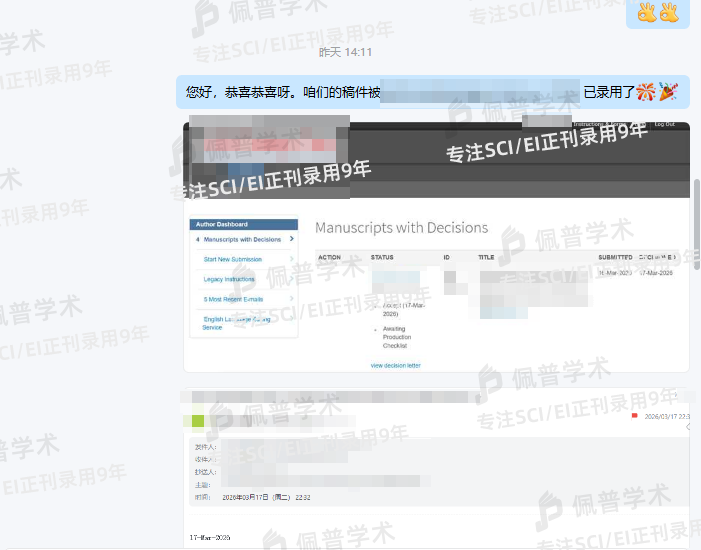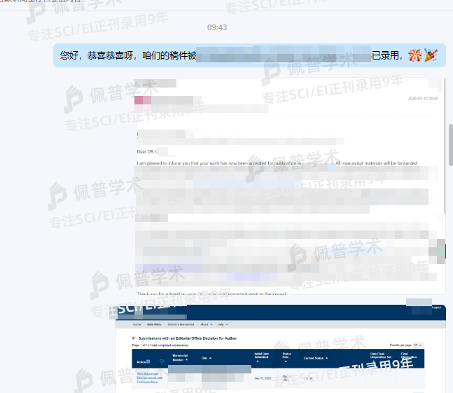 之前文章经过多次拒稿,很大程度是因为期刊不对口被拒稿,最后找到了佩普学术,参加了预审,给我推荐了几本不错的期刊,都不是水刊,很专业,也很靠谱,不到三个月文章很快就顺利接收了。