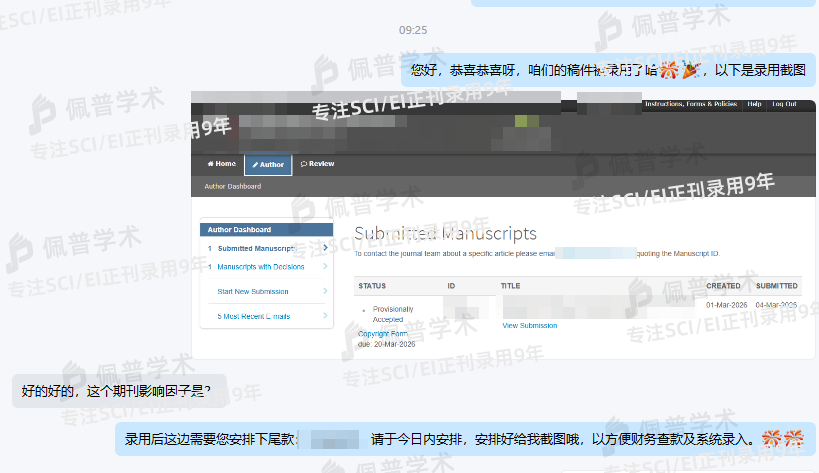 非常感谢各位老师,不仅顺利录用,还拿到了不错的影响因子,真心感谢!