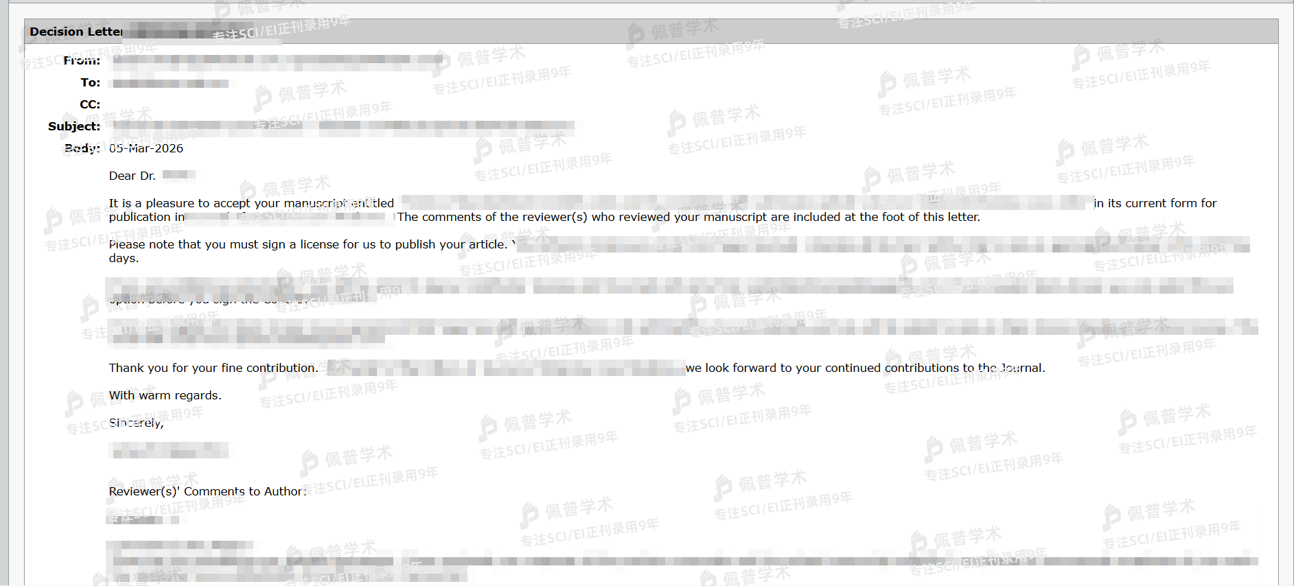 佩普的服务非常专业,提出的预审意见,让我规避了拒稿风险,节省了大量时间,现在已收到录用函,很开心,感谢佩普的各位老师!