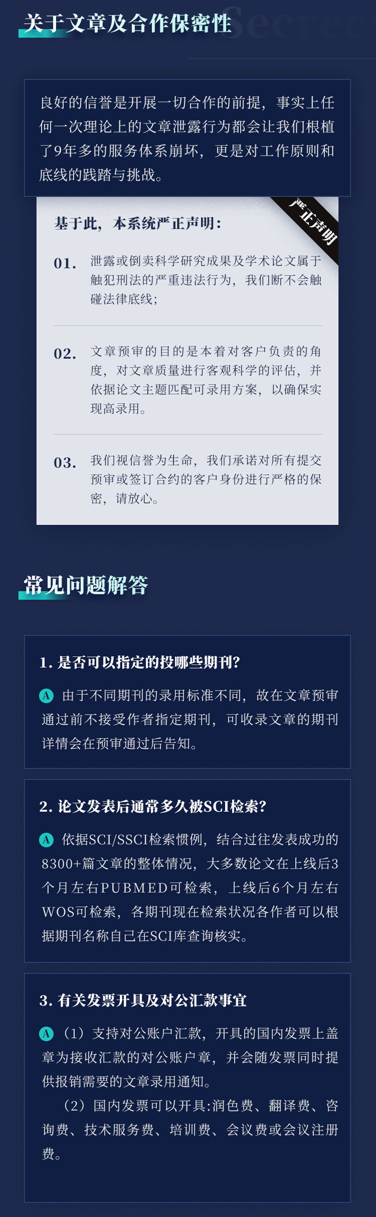 4)从三方监督角度 【佩普学术】与开展战略合作的杂志社,均在签署具有法律效力的保密协议后,方可接收您的文稿,且彼此互相监督,以可确保在任何情况下都不会泄露您的个人详细信息或稿件内容;