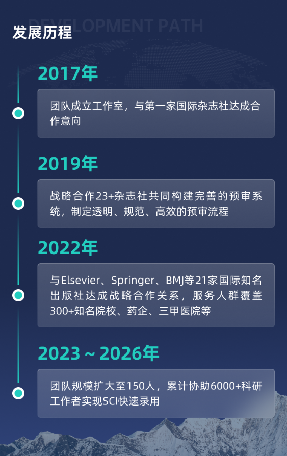 9年来,佩普学术已与21家国际杂志社长期战略合作,致力于围绕科研工作者的文章录用需求,建立了一套完善、合规、严谨的科研服务体系,秉承“诚信、利他、高效”的服务宗旨,9年时间已累计成功帮助8300+篇文章成功录用,助力超6000+科研工作者实现研究成果快速转化。