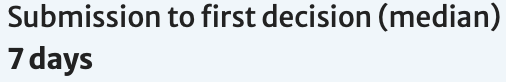 该期刊从提交到做出首次决定需要7天,小编查阅了官网最近新发表的3篇文章,具体情况如下: