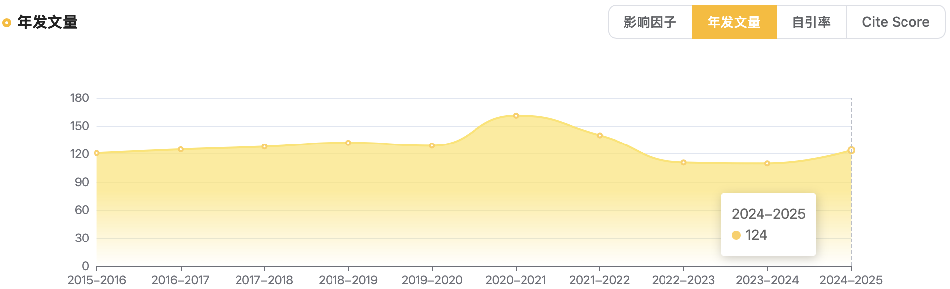 该期刊年发文量不算太大,但发文量相对稳定,2024-2025年共发文124篇。