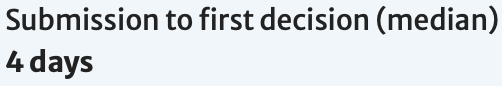 根据期刊官网,该杂志从提交到做出首个决定仅4天。小鹿查阅了该刊最近新发表的文章,收录信息如下: